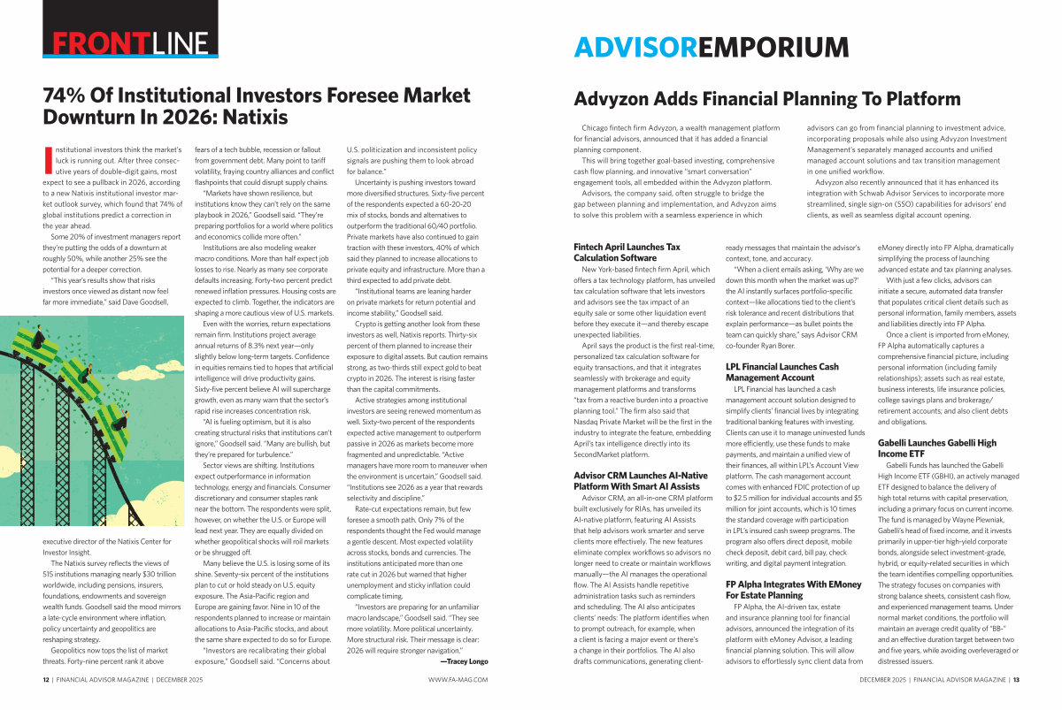 12 | FINANCIAL ADVISOR MAGAZINE | DECEMBER 2025 WWW. FA-MAG. COM
