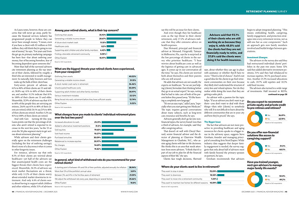 While advisors and their clients generally agree on the retirement challenges( including the fear of outliving savings), there’ s more of a disconnect when it comes to other longevity issues.