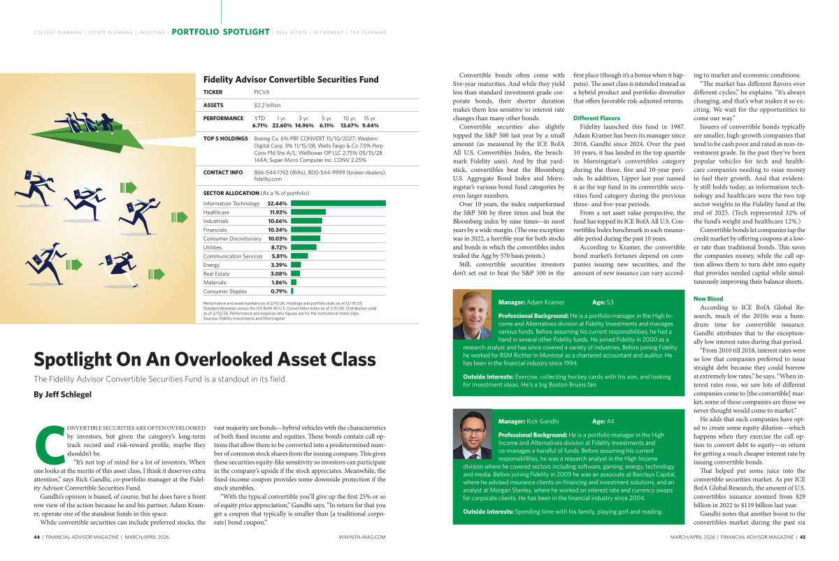 Fidelity launched this fund in 1987. Adam Kramer has been its manager since 2016, Gandhi since 2024. Over the past 10 years, it has landed in the top quartile in Morningstar’ s convertibles category during the three, five and 10-year periods. In addition, Lipper last year named it as the top fund in its convertible securities fund category during the previous three- and five-year periods.