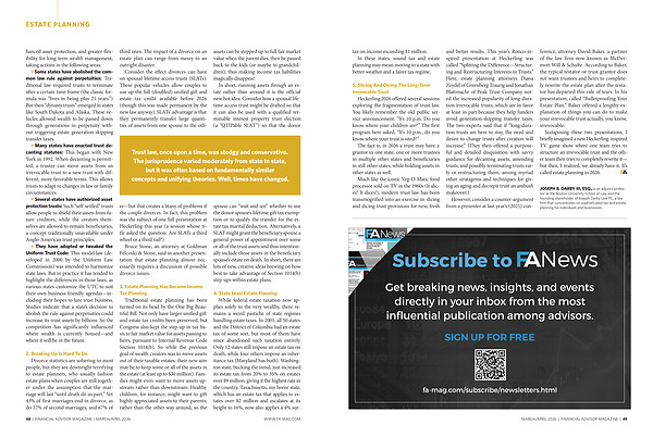 Trust law, once upon a time, was stodgy and conservative. The jurisprudence varied moderately from state to state, but it was often based on fundamentally similar concepts and unifying theories. Well, times have changed.