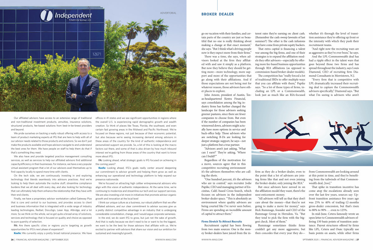 The competition has“ really forced a lot of traditional IBDs to offer multiple ways that you can affiliate with them,” Papike says.“ So a lot of those types of firms, including an LPL or a Commonwealth, look just as much like an RIA-focused